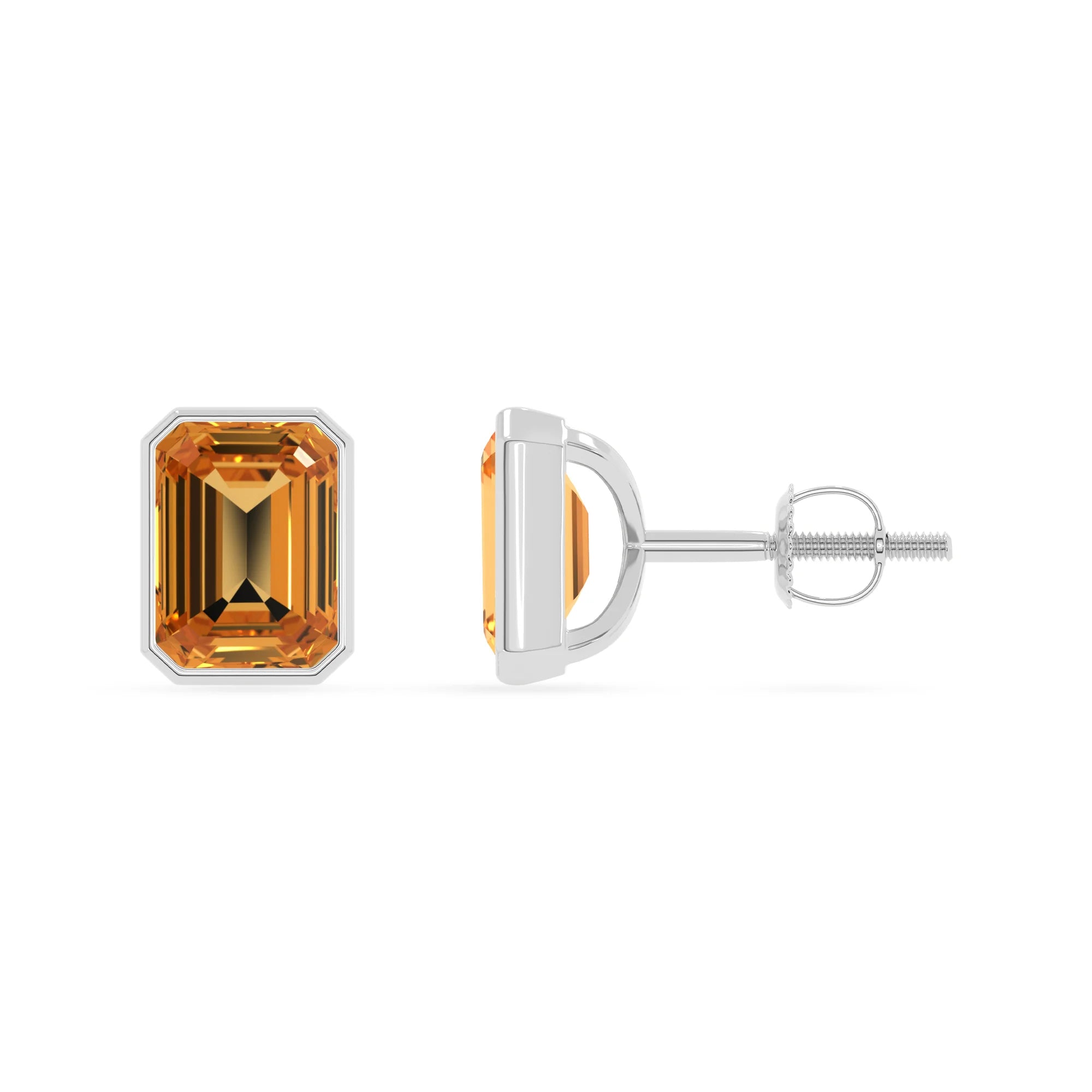 Introducing the GEM NOIR Lab-Grown Citrine Emerald-Cut Shape Stud Earrings in Sterling Silver—a versatile piece capturing the serene beauty of citrine. Crafted with 6x4mm lab-grown Citrine gemstones in bezel setting, offering a range to suit every style and occasion. Citrine, the perfect birthstone for November, is known for its rich, calming orange hue.