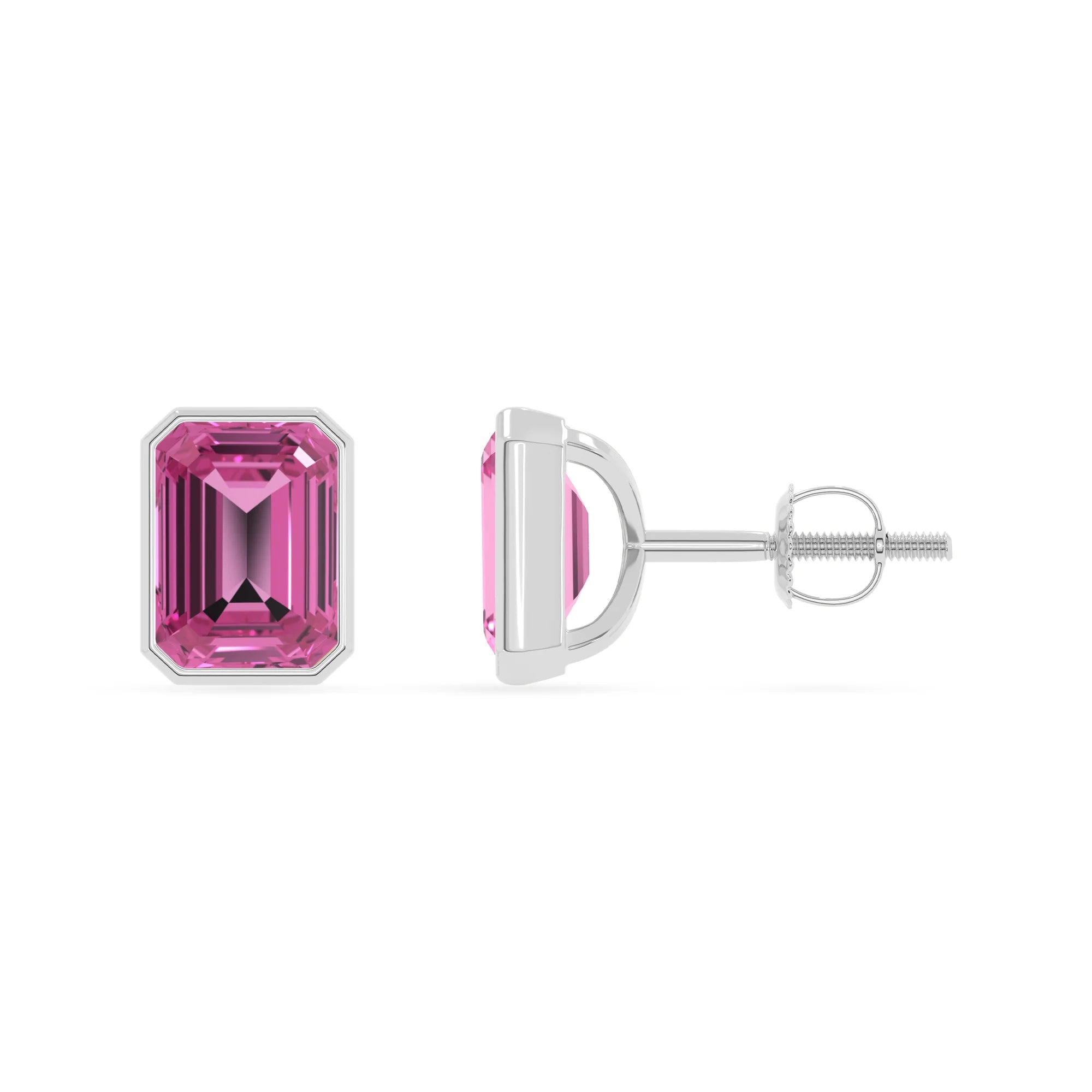 Introducing the GEM NOIR Lab-Grown Pink Sapphire Emerald-Cut Stud Earrings in Platinum —a timeless piece perfect for every occasion. Crafted with 6x4mm lab-grown Pink Sapphire gemstones in bezel setting, these earrings radiate elegance and versatility. Known as the September birthstone, Pink Sapphire brings its captivating magic. This stunning jewelry is a thoughtful choice for birthdays, anniversaries, engagements, graduations, or celebrations like valentines day, Mothers day, Halloween, Christmas, and Easter.